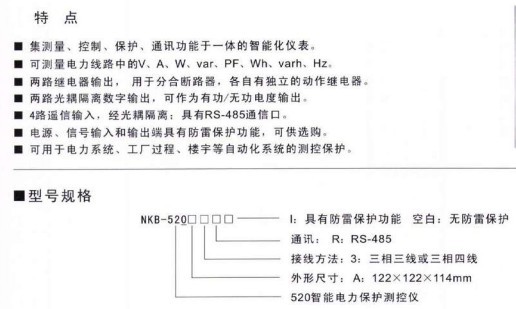 NKB-520智能电力保护测控仪销售0731-23353555免费服务热线:4006-733-731 传真:0731-23332550