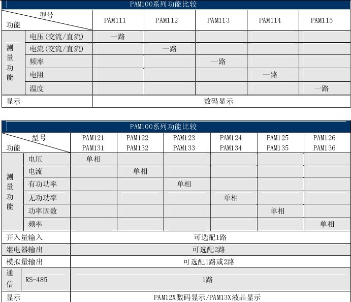 PAM100系列智能配电仪表 生产 0731-23352111 PAM100系列智能配电仪表 询价 0731-23354988 PAM100系列智能配电仪表 销售 0731-23353777 品牌:湘湖电器、湖南湘湖 PAM100系列智能配电仪表 PAM100系列智能配电仪表测量功能:电流测量,电压测量,功率测量,功率因数测量,频率测量,有功电能测量,无功电能测量等。 PAM100系列智能配电仪表可选配功能:RS485通讯接口,模拟量变送接口,继电器触点报警,开关量输入等。